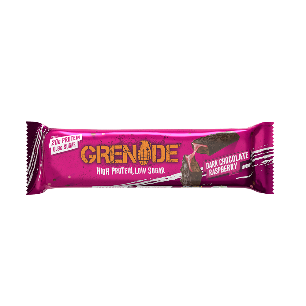 This one is good… Berry, BERRY good! With a deliciously sweet raspberry crème filling and a rich, decadent dark chocolate coating, the Grenade Protein Bar Dark Chocolate Raspberry protein bar is a real treat for the taste buds. Topped with crunchy cocoa nibs and and a soft nougat layer, this protein-packed chocolate bar offers indulgence without the sugar – with 20g of quality protein and just 0.9g of sugar per bar!